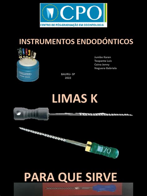 - Lima K manual para la preparación del conducto. Su sección es un vástago retorcido de forma cuadrada. Fabricadas en acero inoxidable de alta calidad.