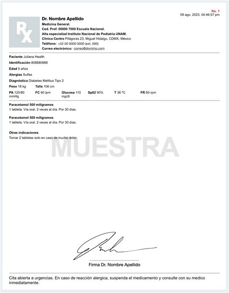 La validez y legalidad de una receta médica, tanto privada como pública, dependen de la información que contiene. El Real Decreto 1718/2010 establece pautas claras sobre los datos esenciales que deben figurar en las recetas médicas, garantizando su correcta interpretación y validación en las farmacias. La inclusión detallada de esta información no solo asegura la validez de la receta en las farmacias, sino que también proporciona a los profesionales de la salud los datos necesarios para garantizar la seguridad y el bienestar del paciente. Esta prescripción incluye información detallada sobre la dosis, la frecuencia de administración y cualquier otra instrucción relevante para el tratamiento.
