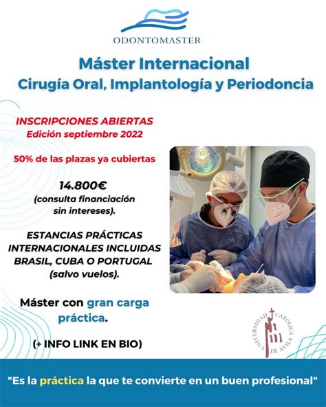 El Máster en Cirugía Oral, Implantología y Periodoncia ofrece una especialización de alto nivel en un período de 2 años. El programa está diseñado para proporcionar una formación clínica avanzada, utilizando los últimos avances en tecnología quirúrgica y abordando una amplia variedad de casos.