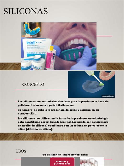 | Silicona de Condensación | Buena recuperación de la deformación | Menor estabilidad dimensional que la silicona de adición | Prótesis fijas y removibles |