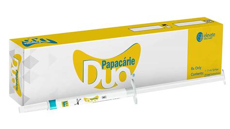 Papacárie Duo es un novedoso gel para retirar caries, sin necesidad de usar turbina. Con una sola gota de Papacárie, el gel ablanda la caries en 30 - 60 segundos y permite retirarla con una cucharilla. Su efecto bactericida, gracias a la cloramina, nos asegura una excelente efectividad de la restauración, eliminando un gran porcentaje de bacterias acumuladas en los túbulos dentinarios y una superficie rugosa en dentina.