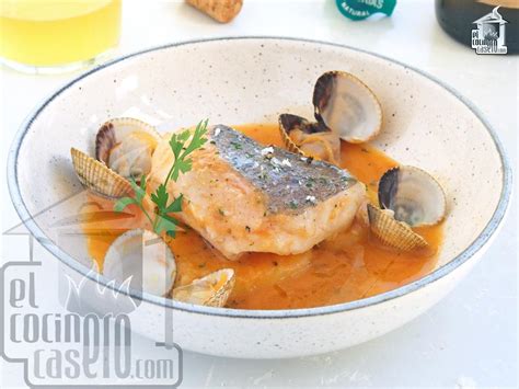 - Rectificar y servir: Probamos la salsa y rectificamos de sal si es preciso. Cuanto estén abiertas las almejas, retiramos del fuego y dejamos reposar 5 minutos con la olla tapada. Servimos la merluza a la sidra con dos rodajas de pescado por comensal, repartiendo las chirlas entre ambos platos y bañando el conjunto con la salsa de sidra.