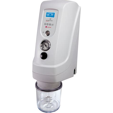 La mezcladora de vacío Iris II Advanced de Mestra, fabricada en España, está diseñada para la mezcla y eliminación de burbujas en revestimientos, yeso y mezclas relacionadas, siendo ideal para su uso en laboratorios dentales. Su diseño combina practicidad y ergonomía, con una estructura robusta que integra motor, bomba y chasis.