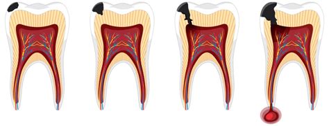 No podemos determinar el número de meses o años exactos en los que tarda en desarrollarse una caries muy profunda y llegar hasta el nervio, pero hay etapas claras en su desarrollo: