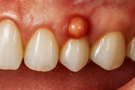 - Bulto en la encía: Muchas veces se forma una pequeña protuberancia como un granito o flemón sobre la encía. Puede ser blanco, amarillento o rojizo.
