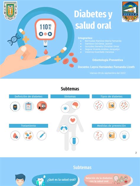 - Cicatrización lenta de heridas: Las personas con diabetes y enfermedad periodontal pueden experimentar una cicatrización más lenta de las heridas en la boca después de procedimientos dentales o cirugías periodontales.