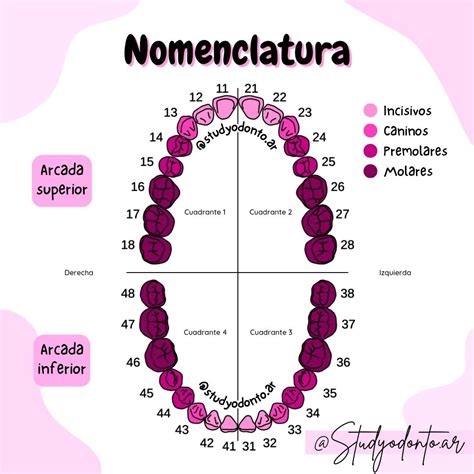 - Cuadrantes: La boca se divide en cuatro cuadrantes: superior derecho, superior izquierdo, inferior izquierdo e inferior derecho.
