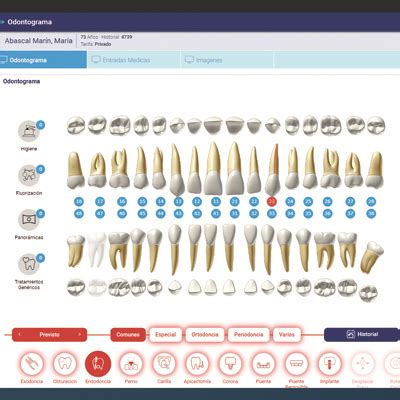 - Registro Detallado: Permite registrar de manera precisa y organizada el estado de cada diente, incluyendo cualquier anomalía o tratamiento realizado.