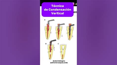 - Técnica de condensación vertical caliente: En esta técnica, se utiliza un cono principal que, junto con el cemento sellador, se compacta verticalmente utilizando calor y condensadores especializados. La gutapercha calentada se adapta mejor a las irregularidades del conducto, permitiendo un sellado tridimensional más efectivo, incluso en anatomías complicadas con conductos accesorios. Esta técnica es ideal para casos complejos que requieren un sellado preciso. No obstante, su aplicación es más demandante en términos de tiempo, requiere equipos especializados como calentadores y condensadores, y exige un operador con experiencia.