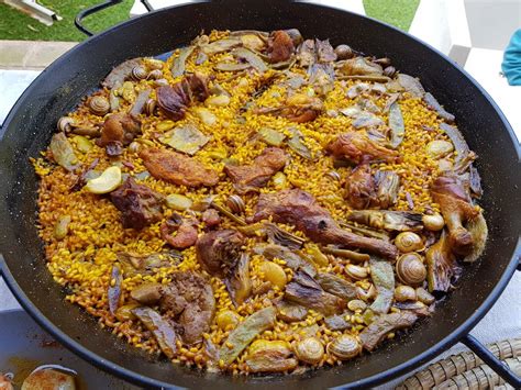 La paella de carne es una de las variedades más populares, preparada frecuentemente en los hogares debido a la accesibilidad y economía de sus ingredientes en comparación con la paella de marisco.