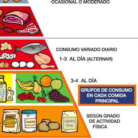 Ejemplo gráfico de la pirámide alimenticia.