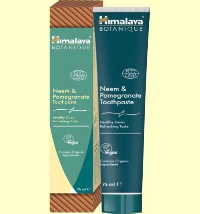 La pasta de dientes Himalaya Botanique combina los 75 años de experiencia de Himalaya en el Ayurveda con ingredientes orgánicos certificados, cultivados en suelos fértiles y naturalmente nutritivos. Esta combinación única de Neem Ecológico, Granada Ecológica y otros extractos de hierbas ecológicas ofrece una limpieza profunda, refresca el aliento y ayuda a mantener unas encías sanas para una sonrisa brillante.
