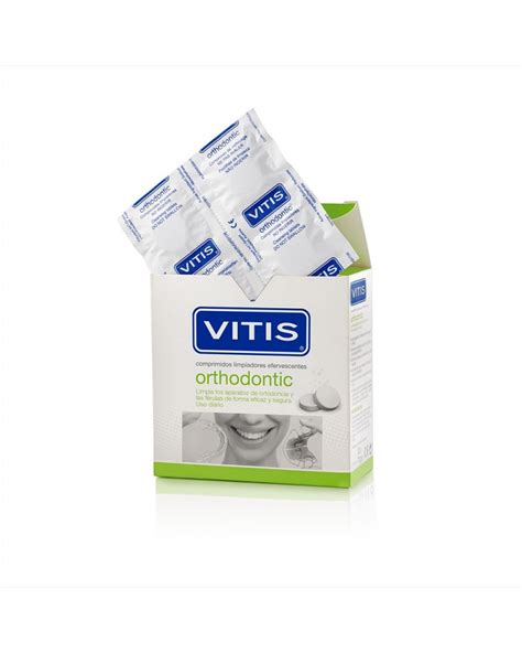 | Comprimidos Limpiadores Vitis Orthodontic | Sodium Bicarbonate, Sodium Carbonate Peroxhyydrate | Limpian aparatos, previenen mal olor, eliminan coloración |