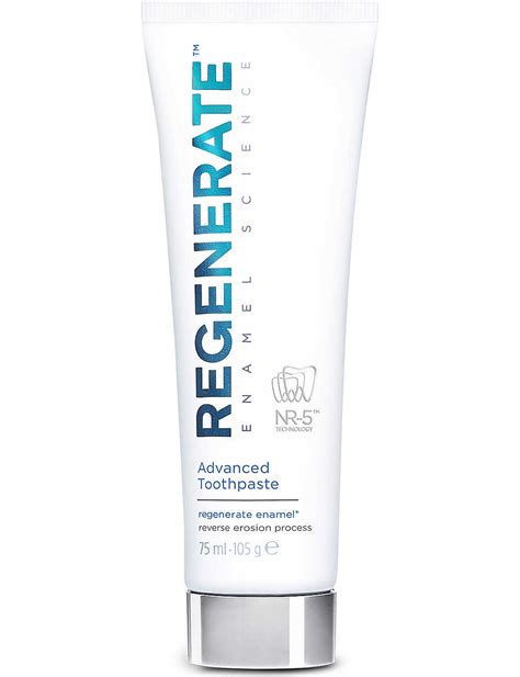 Regenerate Enamel Science es una pasta de dientes avanzada que ayuda a la regeneración del esmalte dental. Su fórmula única, impulsada por una tecnología NR-5 exclusiva y clínicamente probada, envuelve y se integra con los dientes para reforzarlos. Actúa en las invisibles fases iniciales del proceso de erosión del esmalte restaurando el contenido mineral y la microdureza del esmalte mediante el uso regular.