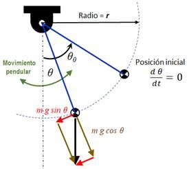 Representación esquemática de un péndulo en funcionamiento.