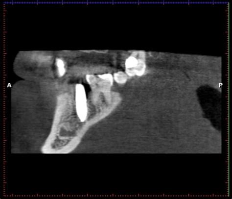Seguimiento: Se realizó el seguimiento con radiografías periapicales y, a los 20 meses, se realizó un control con CBCT de campo limitado para verificar la evolución de las tablas óseas y las características de la lesión.