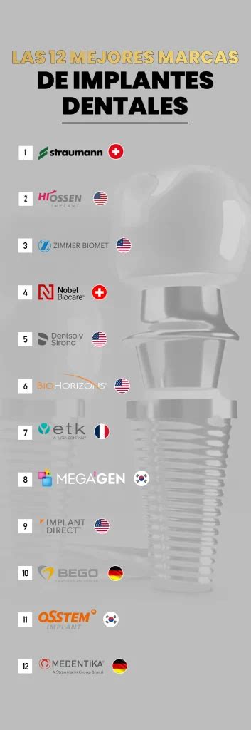 En el mercado existen otras marcas de implantes dentales de prestigio, como: