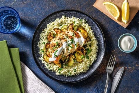 Esta receta de HelloFresh convierte una pechuga de pollo con verduras y arroz en una experiencia llena de sabores y contrastes. Aderezamos el pollo con Ras-el-Hanout y acompañamos con calabacín salteado y arroz basmati al limón y perejil, para finalmente cubrir el plato con una refrescante salsa de yogur y especias.