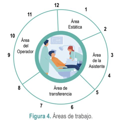 - Zona del Operador: Es la zona comprendida entre las 12 o la 1 y las 7 o las 8. Por este área es por donde el odontólogo se mueve y se sitúa para trabajar.