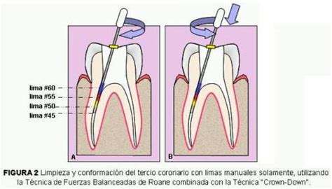 Localización del conducto radicular con localizador apical. - Limpieza y Conformación del Conducto: Empiezas a limpiar y a conformar el conducto con las Limas K de bajo calibre. Preparación de los conductos radiculares. Actualmente esta preparación se lleva a cabo mediante instrumentos mecanizados, que permitirán que la limpieza y conformación de los conductos sea mucho más eficiente. Los instrumentos que se utilizan se denominan limas y tal como su nombre lo indica, son instrumentos que permiten el limado progresivo del conducto. Con este limado se busca eliminar todo el tejido nervioso y bacteriano contenido dentro de los conductos radiculares. Antiguamente este limado se llevaba a cabo de forma totalmente manual. Aunque en la actualidad lo común es combinar las limas manuales con la limas automatizadas, el procedimiento es mucho más efectivo y rápido.