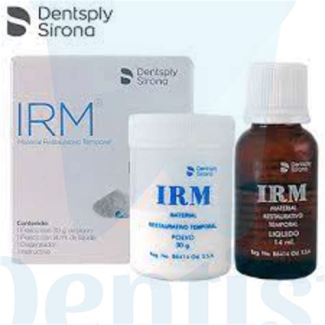 El IRM (Intermediate Restorative Material) de Dentsply es un material de obturación temporal a base de óxido de zinc y eugenol reforzado por polímeros. Este material es ampliamente utilizado en odontología para diversas aplicaciones provisionales.