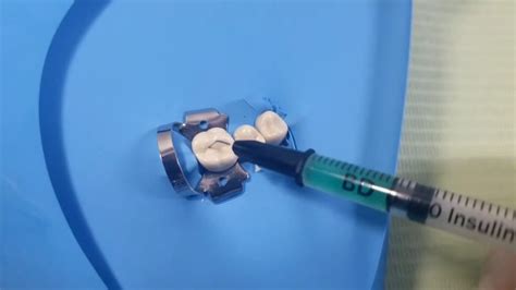 - Se aplica una solución ácida sobre la superficie del diente durante unos segundos. Luego, aplica una solución ácida para crear una superficie más rugosa que mejore la adherencia del sellador. Esto ayuda a que el sellador se adhiera al diente.