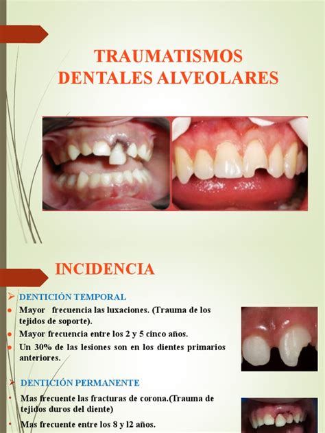 La prevalencia de los traumatismos dentales oscila entre el 10% y el 47%. Estas lesiones tienen un gran impacto en la salud bucodental pública debido a su prevalencia y consecuencias. Se estima que más de mil millones de personas han sufrido algún traumatismo dental en el mundo, y aproximadamente 1 de cada 5 niños menores de 12 años ha experimentado estas lesiones.