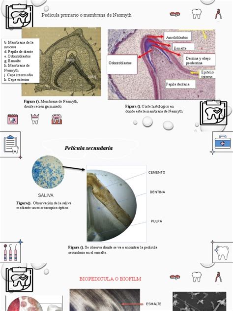 La membrana de Nasmyth, también conocida como cutícula dental primaria o cutícula de Nasmyth, es una fina capa de tejido que cubre los dientes en desarrollo antes de que erupcionen completamente en la cavidad oral. A pesar de ser una estructura transitoria, desempeña un papel crucial en la protección del esmalte dental recién formado y en la maduración del diente.