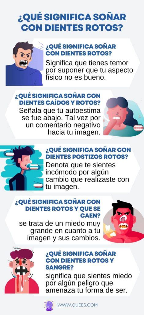 - Inseguridad y baja autoestima: Este sueño a menudo indica inseguridades personales, vergüenza o pánico al notar los dientes quebrados.