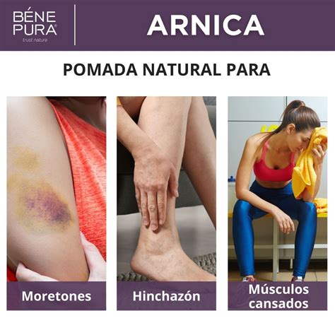 - Árnica: Utilizar pomadas de árnica para desinflamar los hematomas.