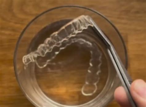 - Enjuagar: Es muy importante enjuagar la férula o aparato dental transparente tan pronto como se retire de la boca, para que las bacterias no empiecen a proliferar en su superficie. Aclara la férula con agua fría o templada.