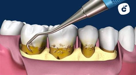 Esto logra eliminar la placa bacteriana (cuya denominación correcta es biofilm bacteriana o microbioma) fijada en los tejidos que lo rodean y el cálculo dental adherido a la raíz), origen de las bolsas periodontales, ocasionando la enfermedad periodontal.
