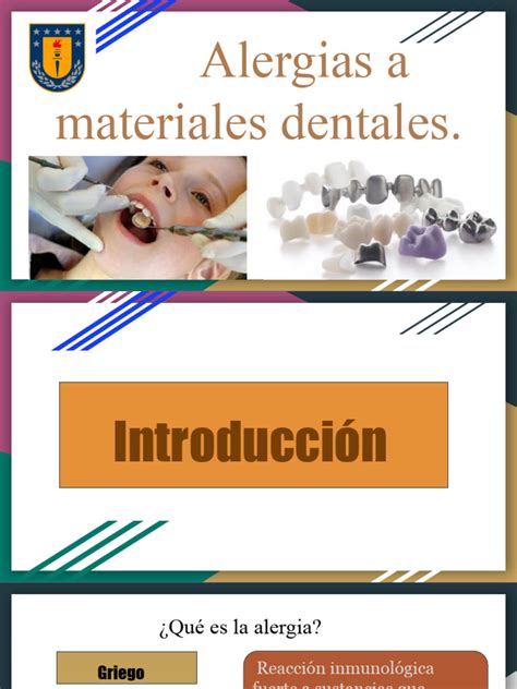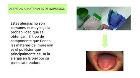 Diversos materiales empleados en odontología pueden ser potencialmente alergénicos. Entre los materiales más comunes que pueden causar alergias se encuentran: