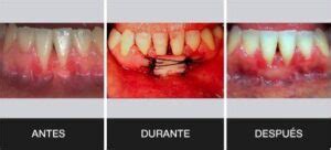 - Injertos de Tejido Conectivo Subepitelial: Esta técnica quirúrgica es considerada en la actualidad como el camino más efectivo para la obtención de una cobertura radicular predecible con un alto nivel cosmético. Esta técnica combina un colgajo que recubre el injerto y un lecho vascular asegurando así la nutrición del injerto. Esta técnica consigue el recubrimiento radicular con gran predictibilidad. Las molestias y complicaciones postoperatorias de la zona donante disminuyen con respecto al injerto gingival libre. Presenta la ventaja de que a veces se puede obtener el tejido conectivo sobrante de una cirugía de reposición apical convencional. Consiste en tomar tejido del paladar (la parte más interna del techo de la boca) y colocarlo en la zona afectada. Aquí también se usa tejido del paladar, pero solo la capa interna, lo que lo hace más estético.