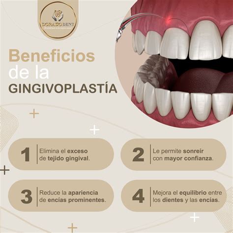 | Gingivoplastia | Remodelar y contornear la encía | Mejorar la estética de la sonrisa |