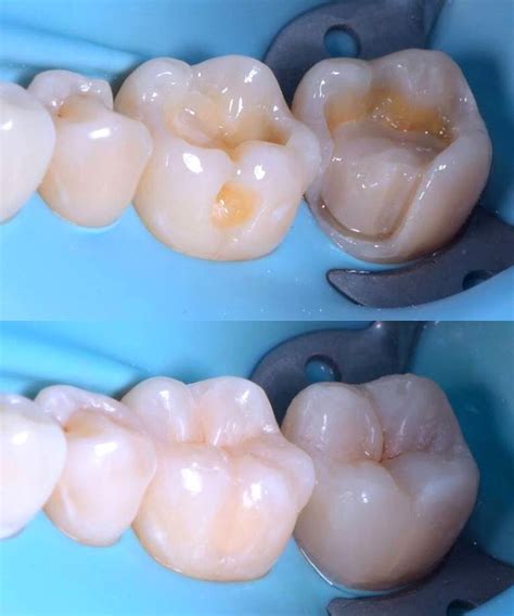- Base en cavidades profundas: Se utilizan como base en cavidades profundas antes de colocar una restauración más gruesa. Su fluidez llena bien los espacios, proporcionando protección adicional a la pulpa dental y ayudando a reducir la sensibilidad postoperatoria.