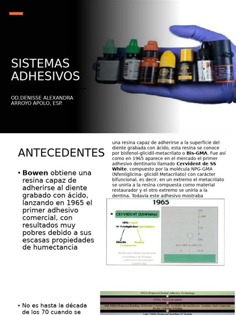 Los sistemas adhesivos dentales son uno de los materiales más utilizados en la clínica dental. Debido a su gran número de tipos, variedades y características diferentes, muchas veces es difícil tomar la decisión sobre el sistema más apropiado a utilizar. Además, la adhesión dental es un proceso complejo, sobre todo en dentina, por su sensibilidad a la técnica y, muchas veces, impredictibilidad. Esto ocurre debido a su composición heterogénea y, en consecuencia, puede ocasionar problemas como la microfiltración bacteriana, caries secundarias y alteraciones pulpares irreversibles.