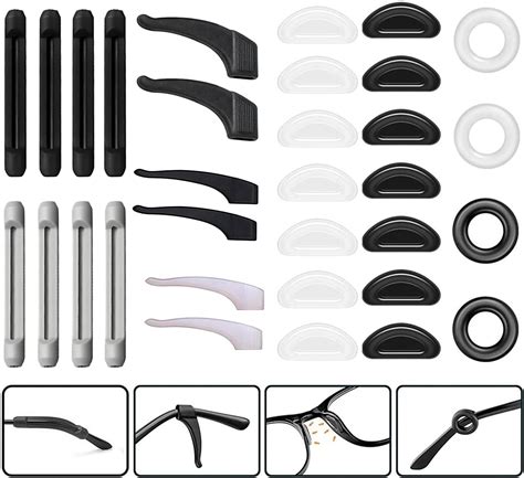 - Ganchos para las orejas: Hechos de silicona y se ajustan a las patillas de las gafas para evitar que se deslicen.