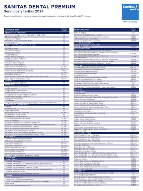 Tabla Resumen de Coberturas Sanitas Dental Premium