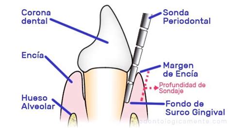 La profundidad del sondaje periodontal es una medida esencial para evaluar la salud de las encías. Se refiere a la distancia desde la encía hasta el fondo del surco gingival o la bolsa periodontal. El procedimiento consiste en medir en milímetros la profundidad de las bolsas alrededor de cada diente.