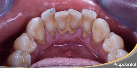 - El sarro duro detrás de los dientes presenta inicialmente una coloración amarillenta que puede evolucionar hacia tonos marrones o incluso negros, dependiendo de factores como el tabaquismo, el consumo de té, café o ciertos alimentos.