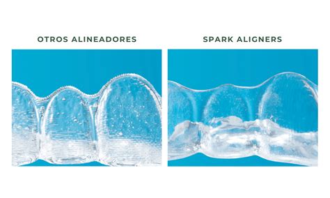 El Dr. Iván Malagón, ortodoncista experto en Invisalign y pionero en los alineadores invisibles Spark, opina que la diferencia fundamental, es que, siendo los dos igual de efectivos, Spark es aún más estético. "Hay numerosos estudios publicados que indican que son muy similares en cuanto a resultados, pero Spark es más fino, más transparente y se adapta mejor el aparato, por lo que el movimiento dental se puede hacer más eficiente. El plástico es más resistente y menos poroso, por lo que se tiñe menos que los alineadores tradicionales".