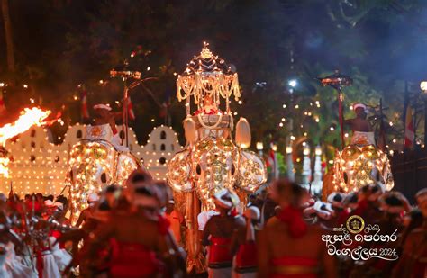 Durante esta celebración, una réplica de la reliquia del diente es llevada en una majestuosa procesión por las calles de Kandy, montada sobre un elefante ricamente decorado. Durante la procesión, se pueden ver bailarines, músicos, malabaristas y portadores de antorchas.
