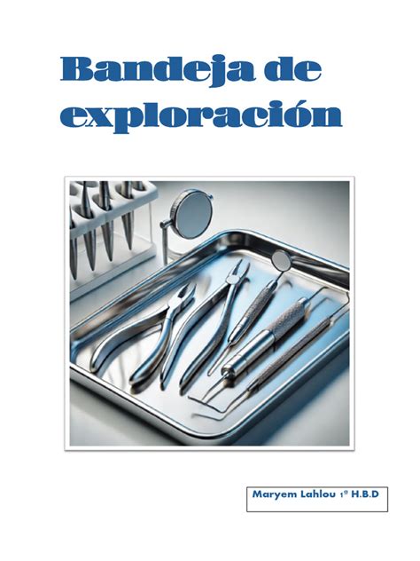 La bandeja de exploración se utiliza para realizar la exploración intrabucal, y forma parte del instrumental básico del dentista. Con la exploración lo que se pretende es realizar pruebas de observación y palpación para conocer el estado de la boca, los dientes y las encías del paciente.